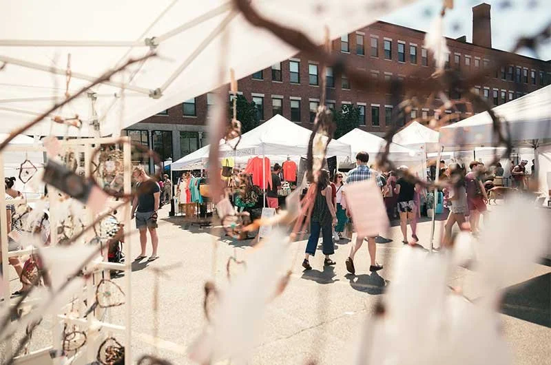 This is a seasonal open air market featuring a wide variety of vendors offering hand-crafted accessories, original art, and antiques as well as local produce, baked goods, flowers and more.